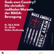 28. April 2026 Di., 15:00 Uhr | Online Studientag – „Gods own Country?“ Die christlich-radikalen Wurzeln der MAGA-Bewegung ONLINE via Zoom |  |