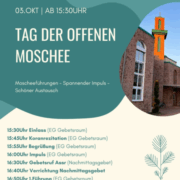 | 3. Oktober 2025 Fr., 15:30 Uhr | Tag der offenen Moschee: „Glaube als Kompass der Menschlichkeit!“ Moscheeführungen • Impulse • Austausch Al-Muhajirin Moschee in Bonn e.V. | Eintritt: kostenfrei | Kurs-Nr.: Extern-VA | ![]() |