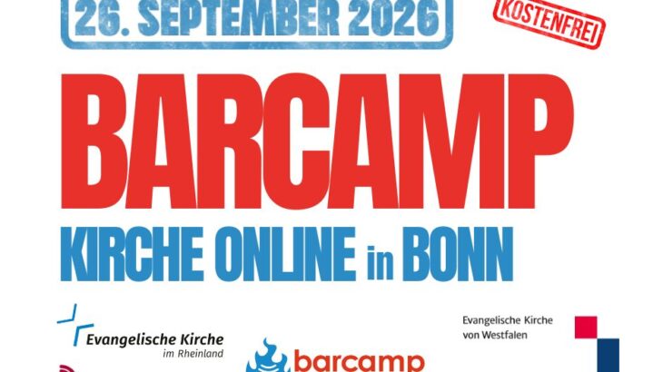 Kommt vorbei und seid dabei am 26. September 2026 beim Barcamp Kirche Online in Bonn! Die Evangelische Kirche von Westfalen, die Evangelische Kirche im Rheinland und die Evangelische Akademie im Rheinland freuen sich, euch im
